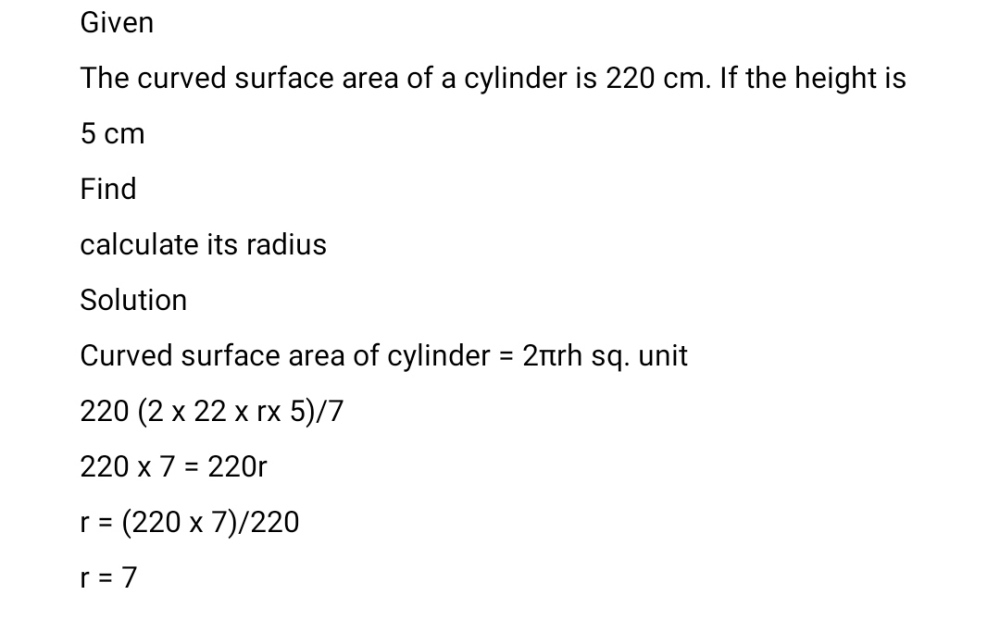 Maybe you would like to learn more about one of these? How to calculate the surface area of a cylinder example. Check spelling or type a new query. We did not find results for: